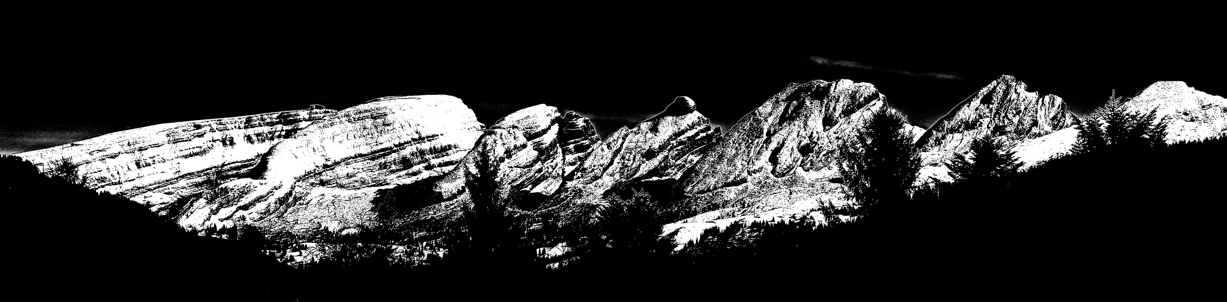 Die sieben Churfirsten – das Wahrzeichen des Toggenburgs, hier in schwarzweiss in Szene gesetzt.