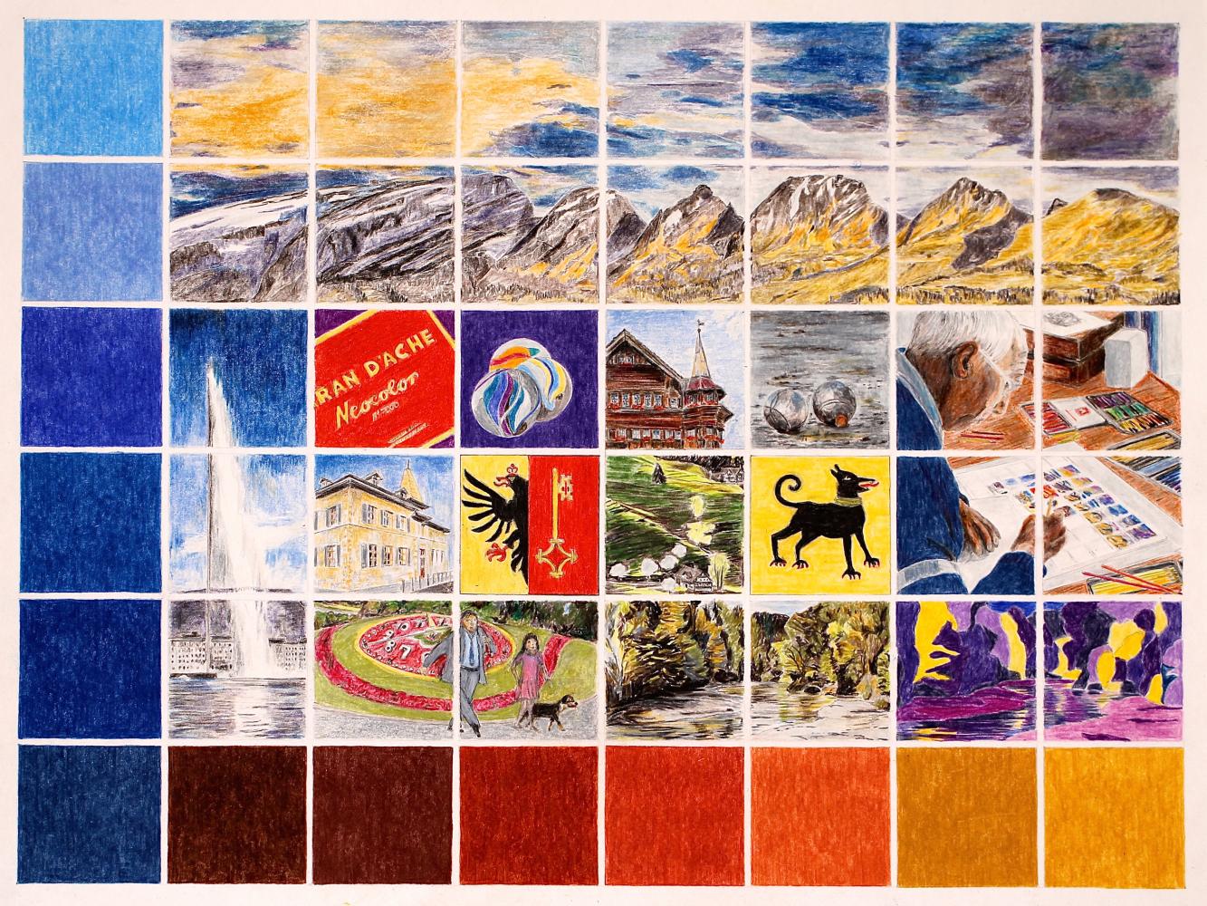 Beim nationalen Zeichenwettbewerb der Firma Caran d’Ache schaffte ich es mit meiner Arbeit „Mein Genf, mein Toggenburg“ (l.) unter die zehn besten Werke in der Kategorie „Masters“. An der Preisverleihung, die am 23. August 2015 im Kunsthaus in Interlaken stattfand, durfte ich von Caran d’Ache-Präsidentin Carole Hubscher (r.) einen Anerkennungspreis entgegennehmen.