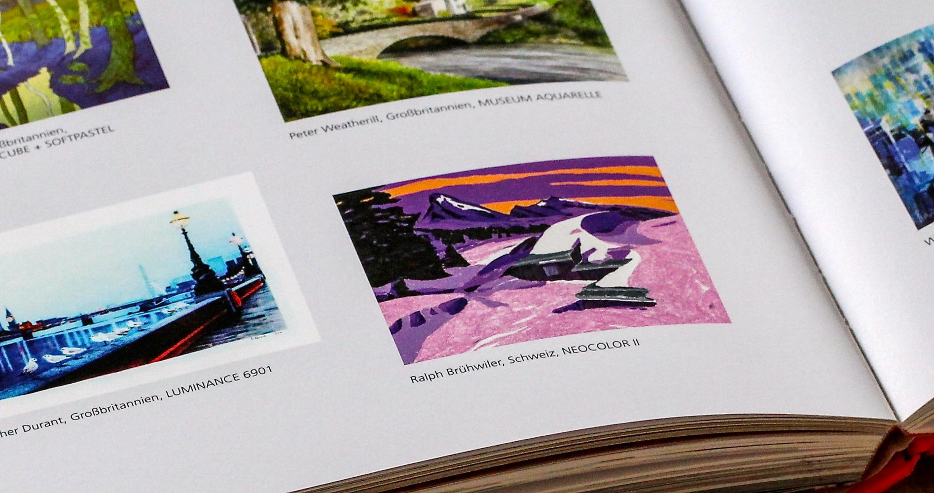 Eine besondere Ehre wurde mir zuteil, als Caran d’Ache ein expressionistisches Churfirstenbild von mir in die Galerie internationaler Künstler aufnahm, die im 2016 erschienenen Buch „Atelier Caran d’Ache“ präsentiert wird. Ich hatte das Winterbild mit der Alp Schribersboden und den beiden Churfirstengipfel Frümsel und Selun mit Neocolor II-Stiften gemalt. Caran d’Ache schreibt zu seiner Galerie: „Ein Spaziergang durch die Galerie soll die beeindruckende Meisterschaft zeigen – und dazu motivieren, das eigene Können auszuprobieren und die eigene Kreativität weiterzuentwickeln.“