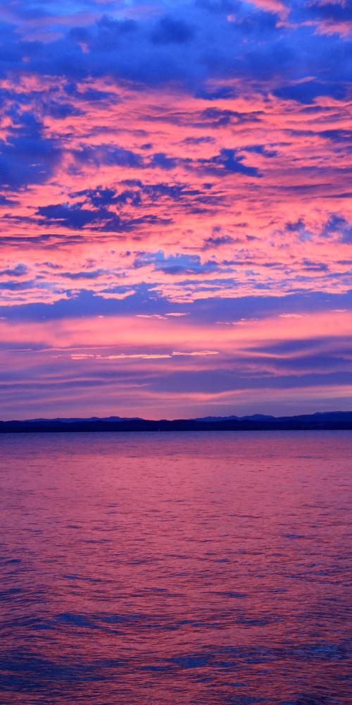 "Rosawolkensee" – der Titel dieses Fotos, das ich an einem Septembermorgen um 06.42 Uhr bei Uttwil am Bodensee aufgenommen habe.