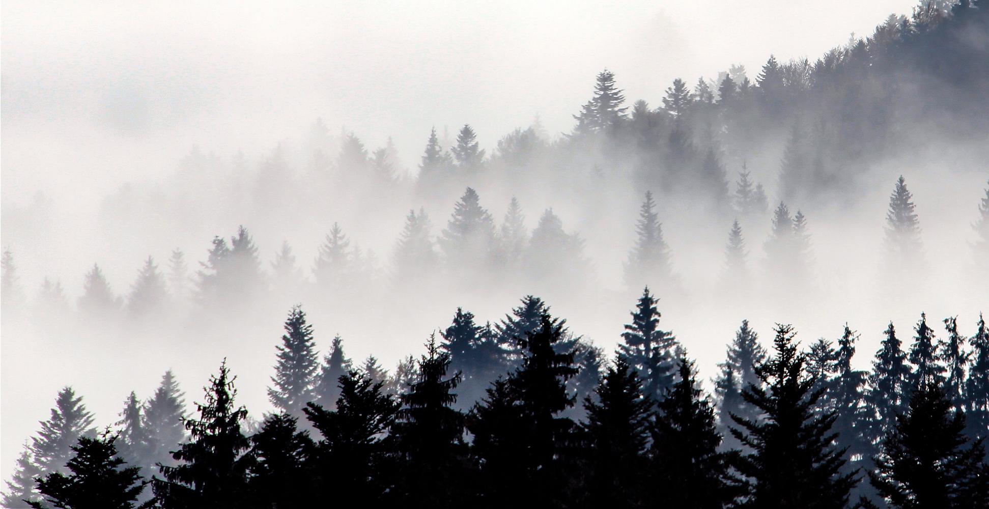 Der Nebel kommt, doch einzelne Tannen ragen noch aus dem Nebenmeer heraus...